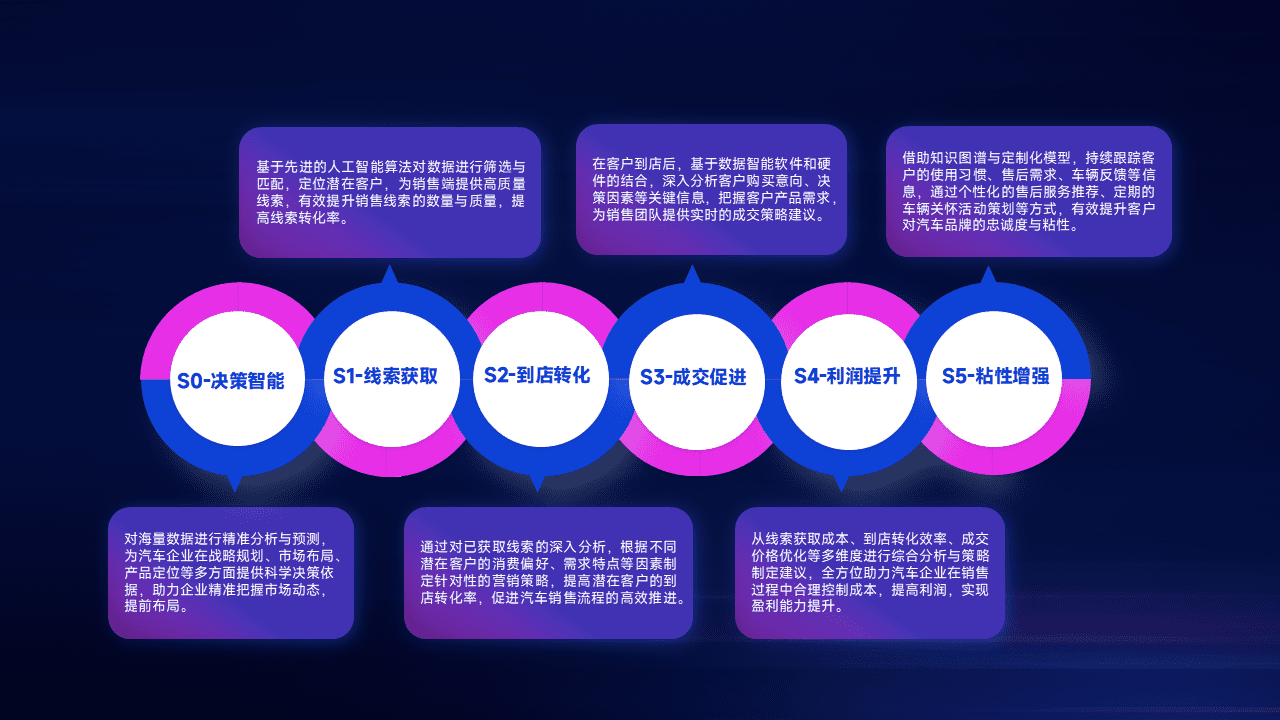 通过拓宽潜在客户来源、、、优化线索分配并提高到店转化率,,,以增强销售效率。。。。同时,,,利用线索数据不断优化分析模型,,,有效提升转化率,,,扩大营销影响力。。。